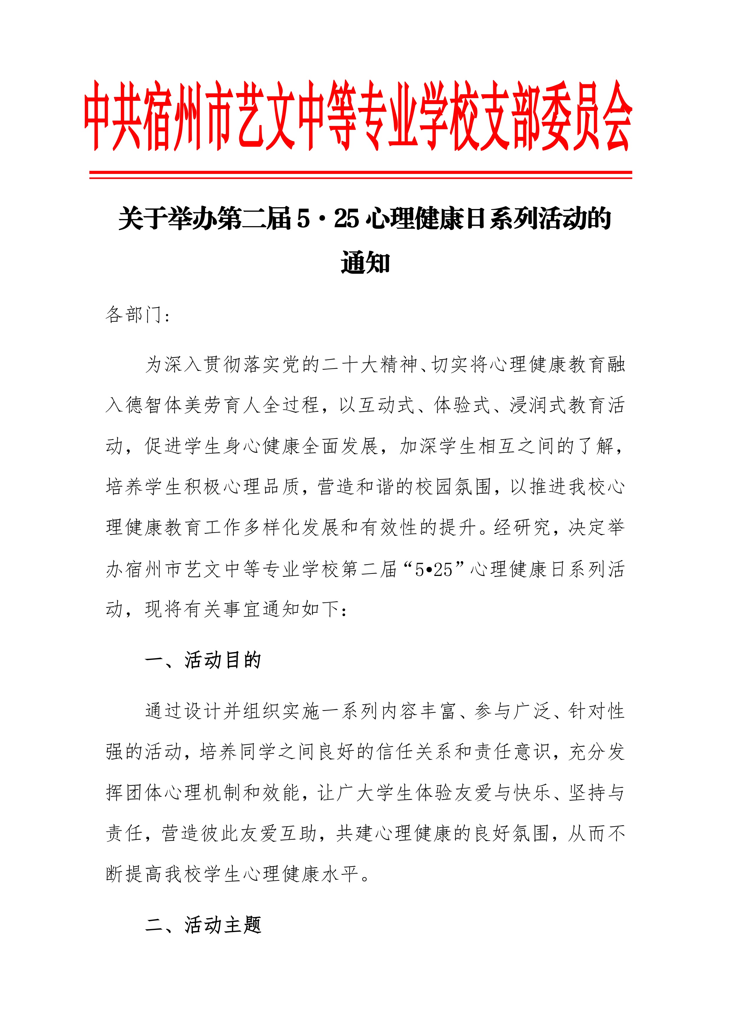 宿州市藝文學(xué)校關(guān)于舉辦第二屆5?25心理健康日系列活動的通知