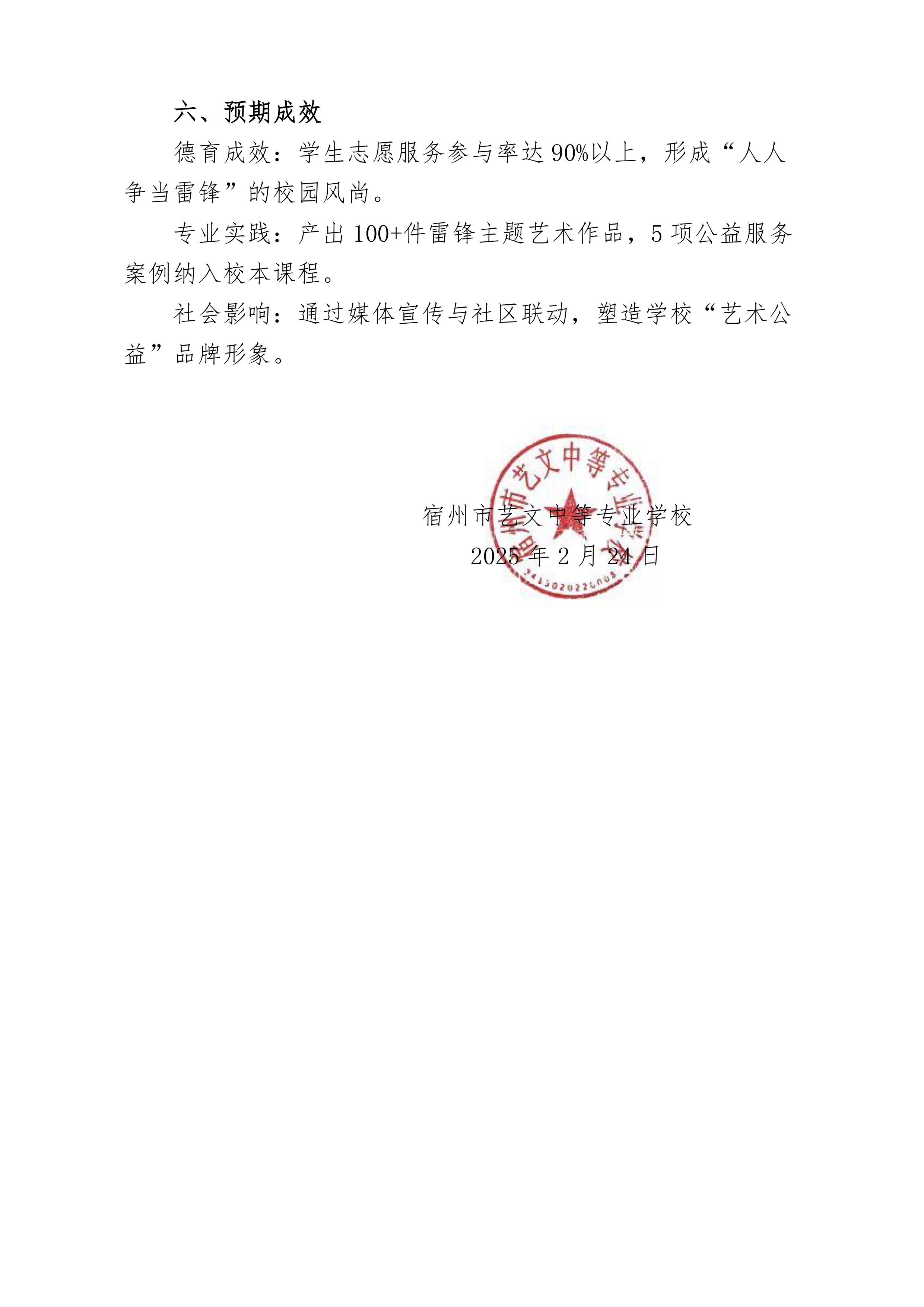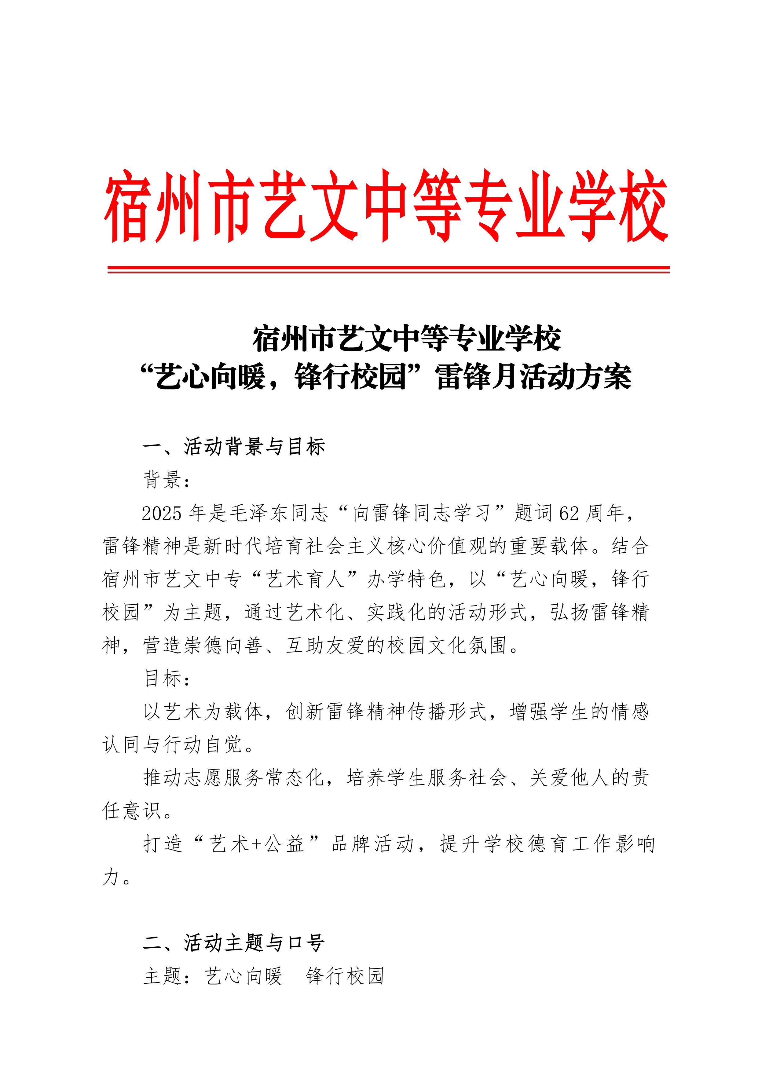 宿州市藝文中等專業(yè)學(xué)?!八囆南蚺?,鋒行校園”雷鋒月活動(dòng)方案