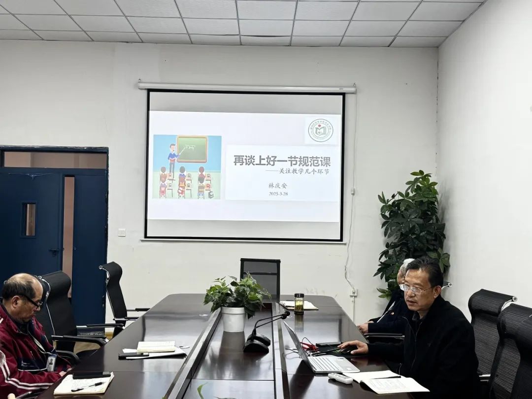 學(xué)校專職督導(dǎo)林慶安教師作《一名合格教師必備的基本素養(yǎng)》專題輔導(dǎo)。林老師結(jié)合其教學(xué)研究經(jīng)驗(yàn),從規(guī)范課堂設(shè)計(jì)、創(chuàng)新教學(xué)方法、完善評(píng)價(jià)體系三方面展開: