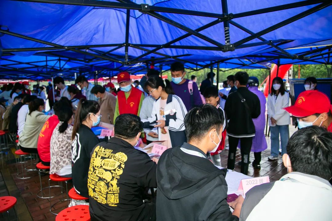 學(xué)生們?cè)诖箝T(mén)右側(cè)招生辦進(jìn)行繳費(fèi)