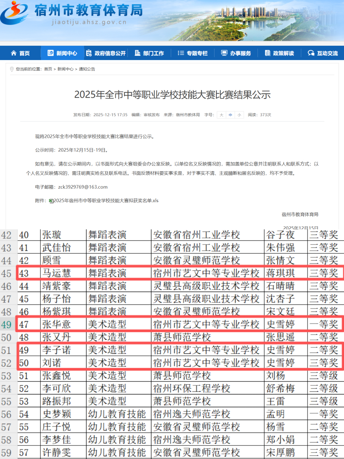 近日,2025年宿州市全市中等職業(yè)學(xué)校技能大賽比賽結(jié)果公示,我校師生憑借出色表現(xiàn),在多個(gè)賽項(xiàng)中斬獲佳績(jī)。