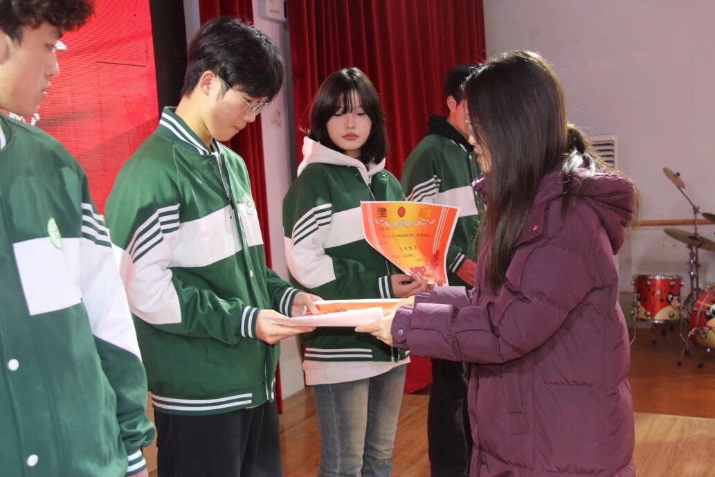 在激昂的樂曲聲中,頒獎環(huán)節(jié)將大會推向高潮。獲獎學生分批依次上臺,從校領導及科任教師手中接過承載著肯定與期望的榮譽證書。臺上榮譽熠熠生輝,臺下掌聲真摯熱烈。此次受表彰學生范圍廣泛,覆蓋各年級、多層面,充分彰顯了學校“人人皆可成才、人人盡展其才”的育人理念,也為全體學生樹立了可學可及的身邊榜樣。