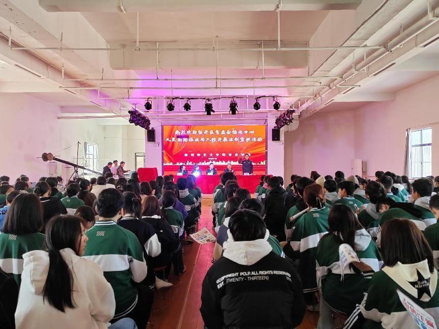 為落實(shí)宿州市預(yù)防青少年違法犯罪百日攻堅(jiān)行動部署,進(jìn)一步加強(qiáng)學(xué)生的法治觀念和法律意識,筑牢思想安全防線,藝文學(xué)校于4月7日在圖書館四樓演播大廳舉辦了法治副校長進(jìn)校園活動。此次法治宣講活動邀請了藝文學(xué)校法治副校長--人民南路派出所李強(qiáng)妹副所長、宿州市經(jīng)濟(jì)開發(fā)區(qū)管委會綜治中心馬可主任主講。200余名師生代表到現(xiàn)場聆聽講座。