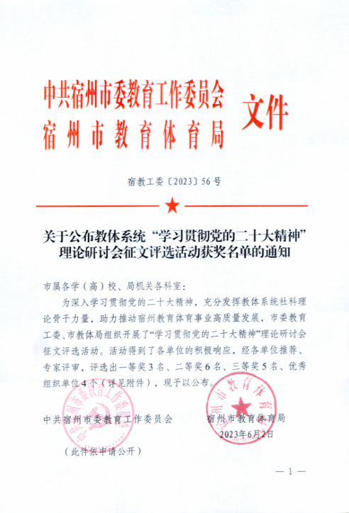 6、在2022-2023學(xué)年度李鐵成獲得“宿州市先進(jìn)班集體”班主任稱號(hào)。