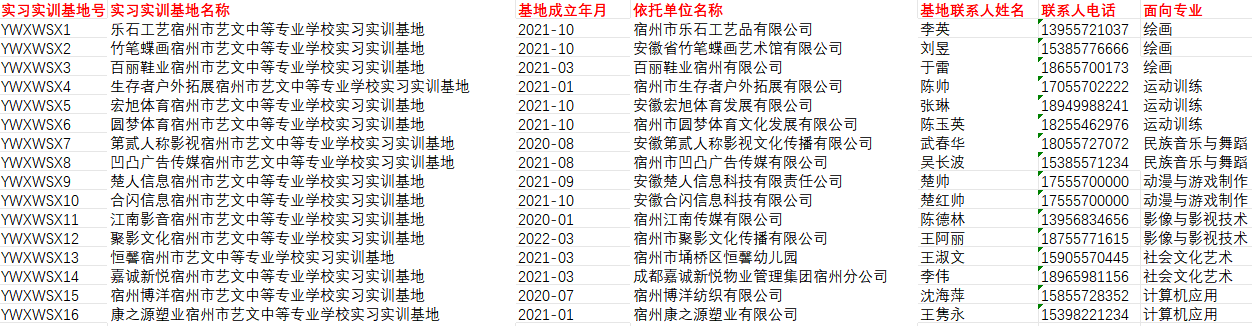 2020年以來藝文中專合作企業(yè)與校外實訓基地一覽表